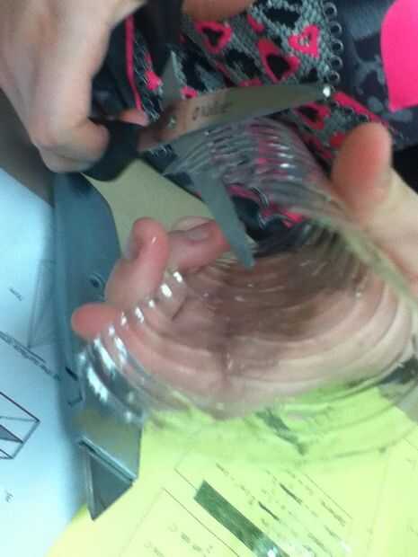 1 cortar la parte inferior de la botella. Que mantenerse en la parte porque vas a necesitar más adelante Segundo corte la parte superior apagado y luego cortar las botellas en tiras