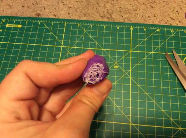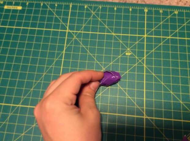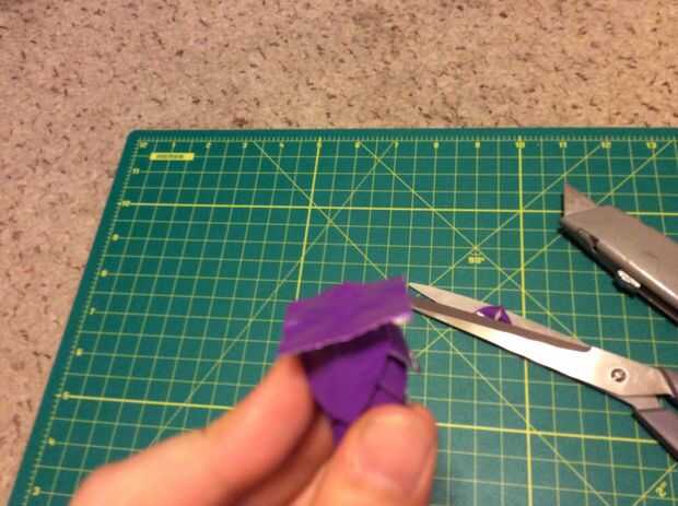 uso las tijeras para recortar la parte posterior fin de la flor, que corte un cuadrado pequeño de cinta y corte ranuras del centro de los lados hacia el centro de la Plaza, coloque la parte inferior de la flor y el molde en la parte inferior de la flor.