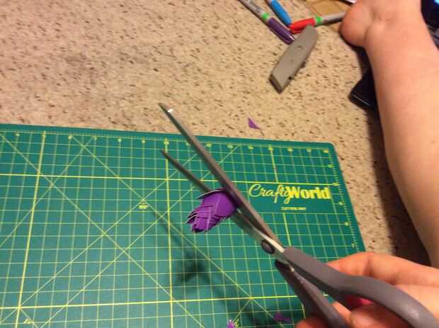 Si vas a poner un tallo de la flor ahora es el momento para hacerlo. toma un limpiapipas u o fino trozo de alambre y en apuñalar a la parte inferior de la flor, cubrirlo con un poco de cinta.