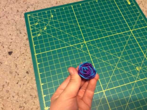 pelar al las tiras y rodillo hasta asegurarse de que mientras usted le presione la cinta en la parte inferior de la flor para asegurarse de que la cinta se adhiera bien.
