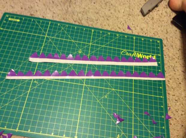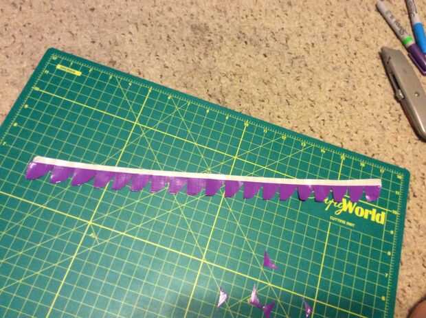 usar tijera le corte la parte doblada de la cinta hasta el adhesivo, los cortes deben ser cerca de 1 pulgada de distancia.