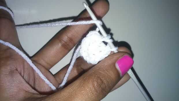 Paso 1: Necesitarás: .yarn .crochet gancho. Tijeras .pom poms o diamantes de imitación (opcionales)Paso 2: Haga un nudo en el gancho de ganchilloPaso 3: Enrollar Paso 4: Envolver y tire la parte inferior cadena encima de uno 6 veces (o la cadena de p