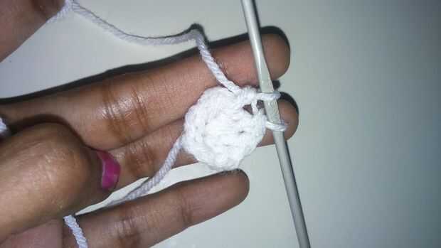 • Después de la cuarta cadena, inserte la aguja en la primera cadena para formar un bucle