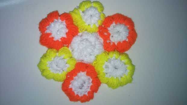 Paso 1: Necesitarás: .yarn .crochet gancho. Tijeras .pom poms o diamantes de imitación (opcionales)Paso 2: Haga un nudo en el gancho de ganchilloPaso 3: Enrollar Paso 4: Envolver y tire la parte inferior cadena encima de uno 6 veces (o la cadena de p