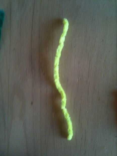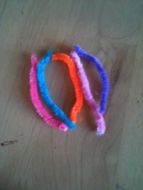 esta es una manualidad muy simple que uso a veces con mis castores y cachorros. Todo lo que necesitas es un tenedor, un limpiador de pipa y algunos hilados.1. Coloque el limpiador de pipa a través de los dientes mediados de la horquilla, con unos 5cm