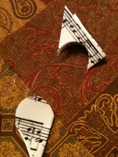A continuación cortar un extremo redondo de pétalo-como de las otras dos esquinas. Revisa las fotos para ver lo que me refiero. Debe ser con curvas por un lado, el otro con la esquina cortada.