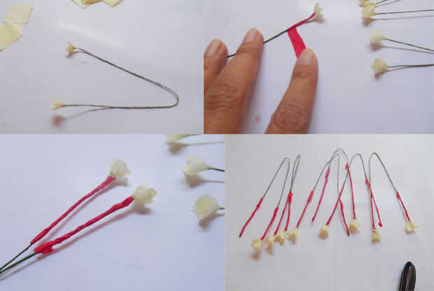 6. doblar el alambre. Y centro de la flor de papel está lista