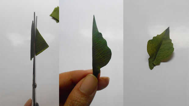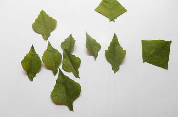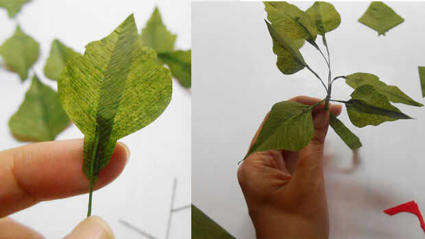 Tamaño del papel pueden ser follajes varían de grandes a pequeños. Es mejor utilizar papeles crepe como los follajes porque tienen textura y pliegues. También es difícil encontrar el color verde derecho de papeles de tejido. Básicamente follajes de papel es casi lo mismo con hacer pétalos de flores de papel de seda.