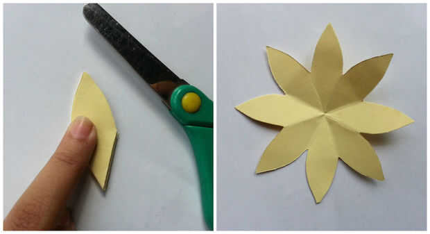 Nuevo corte los 8 papeles pétalos como se muestra en la figura 5 de esta etapa.
