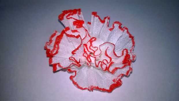 Se hace el papel higiénico de dos capas de papel suave. Ahora tienes que separar en los los bordes y mover ambos en el mismo lado como se muestra. Su flor está listo.