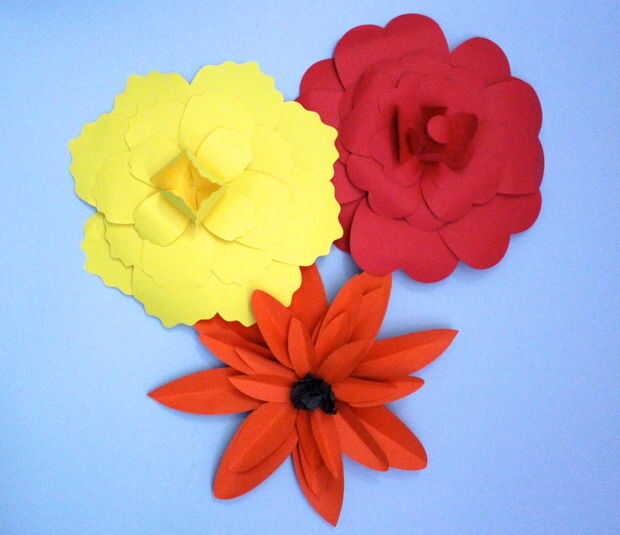 ¿Las flores son un elemento básico de las celebraciones, y lo que podría ser mejor que tener gigantes hermosas flores que adornan su parte o lugar de la boda? Este Instructable proporciona los archivos y las instrucciones para tres diferentes tipos de flores que se pueden personalizar para sus necesidades del partido. He incluido los archivos .pdf, .svg y DXF de las plantillas de pétalo para que los pétalos se pueden cortar a mano, con un cortador láser o con un camafeo de silueta o dispositivo similar. También he incluido un archivo .pdf, .svg y DXF de las bases de cartón que utilicé para mis flores. Cualquier cartón de desecho se hará sin embargo, y estas bases de corte por láser es un paso opcional adicional. Si usted decide cortar el cartón con estos archivos es necesario utilizar un cortador láser, una silueta o Cricut cutter no cortará a través de cartulina 1/8 pulgadas.