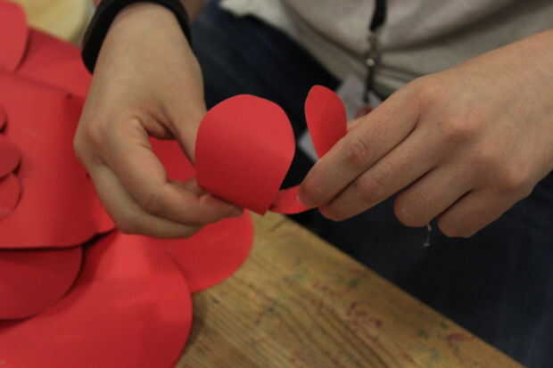 Añadir el tercer y el cuarto pétalo de la misma manera. Para colocar la yema de la flor, añadir un poco de pegamento a la parte inferior de la yema y presione firmemente en el centro de la flor.