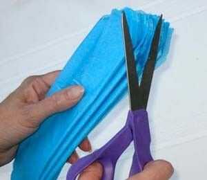 Usar una cadena para hacer un lazo en medio de ese papel doblado. Cortar los dos extremos del papel doblado para hacer que señaló.