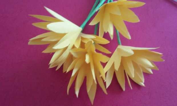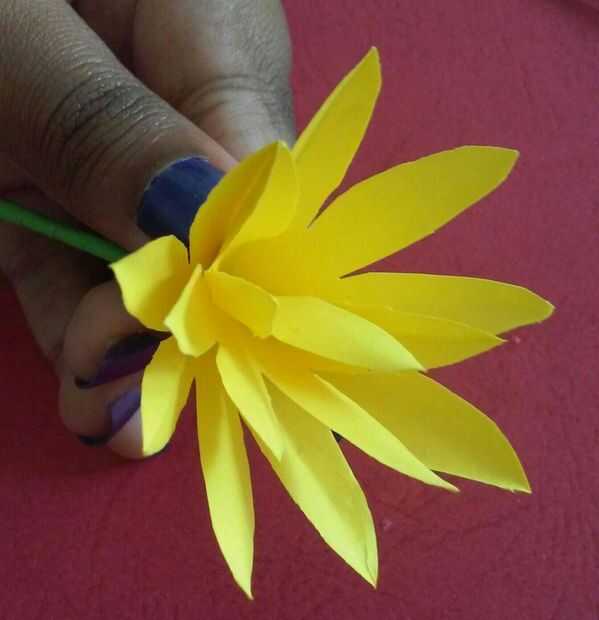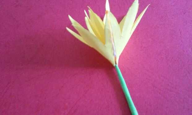 3 entonces doblar la flor dos y pegar el tallo en el centro. Dejar secar unos minutos.