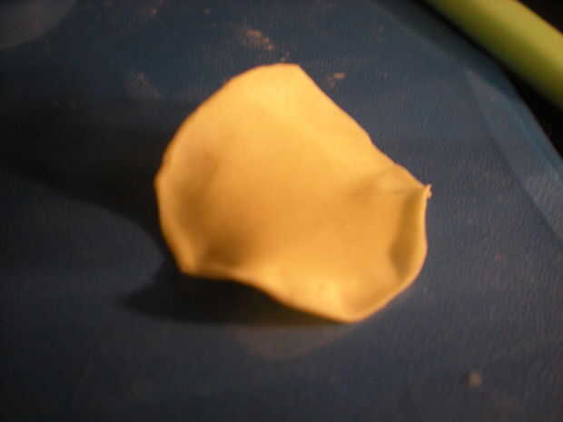 Los bordes de ambos de estos círculos usando la herramienta de la bola de la colmena. (A la colmena aplique presión uniforme a la herramienta de bolas como usted rodillo sobre los bordes de la flor. Dejar está tranquilo por lo que puede colocar los pétalos). Esto puede tomar varios intentos pero usted conseguirá la caída de la misma.