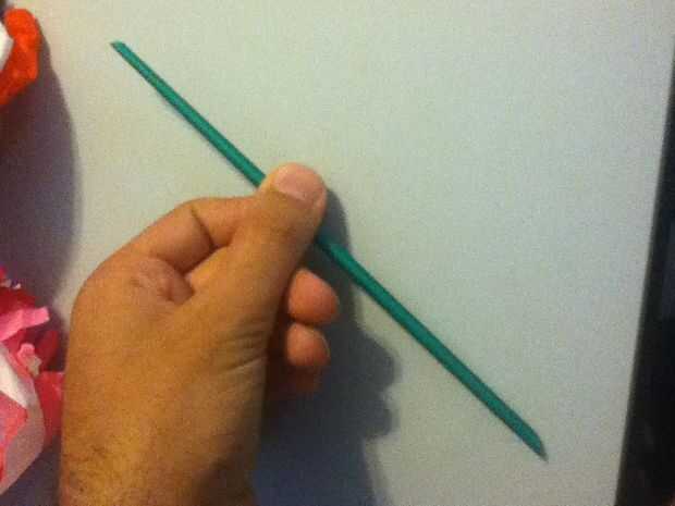 Tome ahora el verde y el color lateral del lugar y llevarlo desde la esquina y enrollar apretadamente como sea posible (cinta si usted debe).