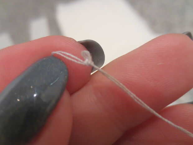 Helpgul sugerencia: Cómo hacer un nudo francés: Si no está familiarizado con la costura, se hace un nudo francés haciendo lo siguiente: Envuelva el extremo de su hilo en el dedo (puntero o medio trabajo mejor), a continuación, con el pulgar, el hilo en el dedo del rodillo y ejecutan sus uñas a lo largo el nudo creado. Esta es una manera super sencilla para atar los extremos del hilo de rosca