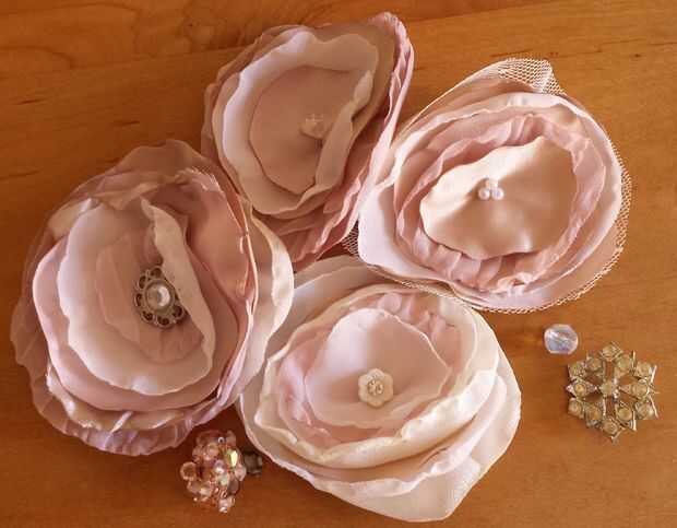 Suba la flor derecha. Añadir un centro a la floración. Esto es donde los cristales, botones, pintura perla, brillo o pendientes antiguos resultarnos de ayuda. Se vuelven locos con los pertrechos.