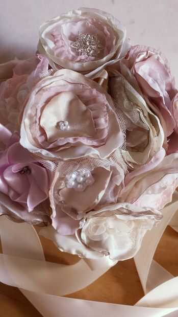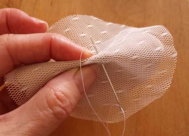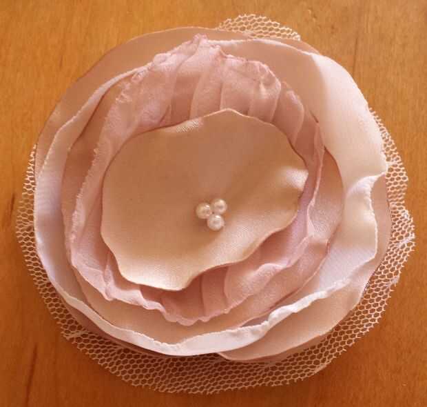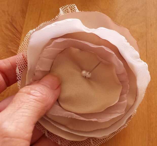 Para garantizar y crear dimensión, voltee la flor y pellizcar en la mitad. Tomar unas puntadas para mantener presión y nudo.