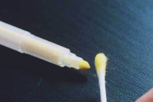 Tomar un rotulador amarillo y pintar el disco de algodón amarillo. El número de bastoncillos de algodón que prepara debe depender del número de flores que vas a crear. Se utilizaron tres hisopos de algodón.