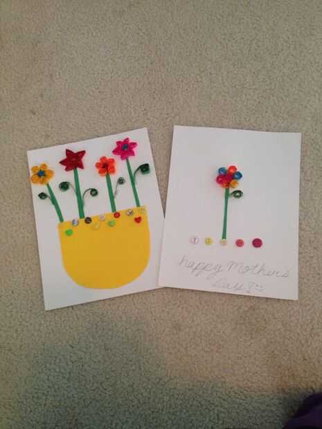 Aprendí a hacer esto en una tarjeta local de fabricación de taller. Mi hija y yo para dia de las madres realizado el año pasado y están pensando en lo que otra vez este año! Iba a añadir brillo al estambre, pero sé que mi mamá hubiera asustado cuando