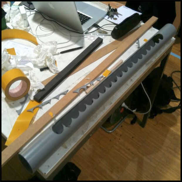 Tome un cutter / cuchillo de la alfombra y el corte de los bordes molidos. Como una regla utilicé un listón de madera a la mesa.