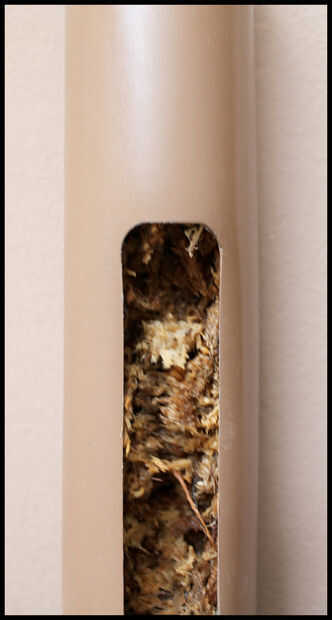Poner un montón de musgo seco en la tubería. Usted puede conseguir esto en cada tienda de la flor, la mayoría de las veces incluso obtendrás lo gratis. Esto sirve como un sustituto de la tierra y no se caiga del tubo cuando está colgando en la pared. Moss puede almacenar cerca de 10 veces su volumen de agua. Por lo tanto tienes que verter el flor tubo solamente cerca de una vez por semana.
