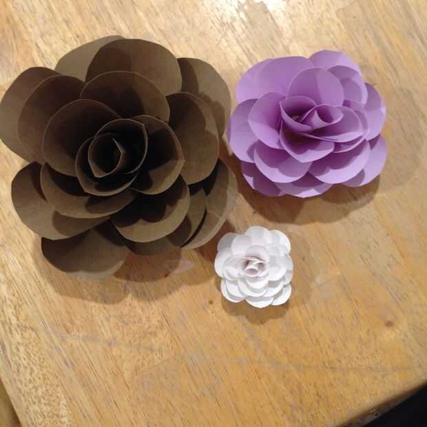 En la foto tengo los tres tamaños, es marrón 3", es de color púrpura 2", y es blanco 1". Ven muy bien juntos y como centro de mesa. Pongo una foto de una idea central en el primer paso de este tutorial (si te lo perdiste!) para que pueda regresar y echar un vistazo si te interesa.