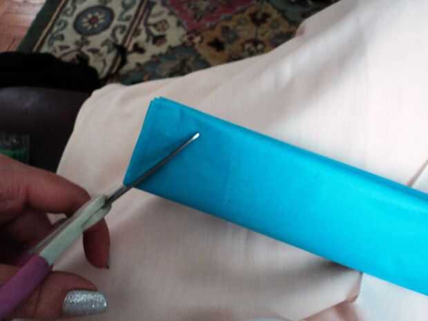 materiales:-Papel de seda (cualquier color y por lo menos 10 pies cuadrados)-Tijeras-A la regla-Un lápiz-PrecintosPaso 1: Medir y trazar Instrucciones1. Coloque el papel de tejido sobre una superficie plana (una mesa o el piso hará). Mida y marque (c
