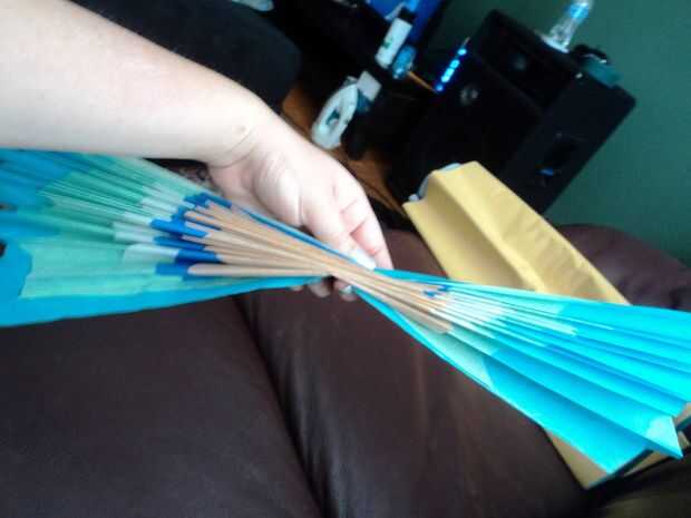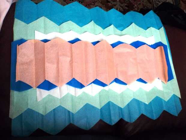 Desplegar cada tira de papel, a partir del más largo y revelar y centro de cada pieza más corta de papel encima de la última de ellas. Está bien si no son perfectos, no mostrar en el extremo. Doble el papel juntos empezando en un extremo y doblar la pila completa de papel estilo acordeón hacia adelante y hacia atrás alrededor de una pulgada cada forma hasta que todos los papeles se pliegan juntos.