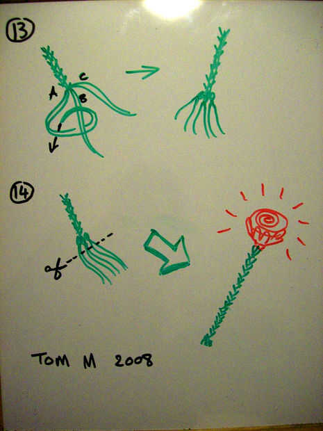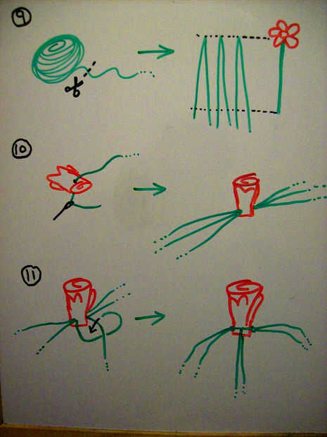 11) atar cada cuerda. Esto mantiene la cabeza de la flor.