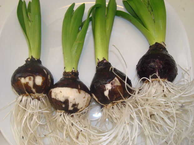 Coloque los bulbos en sitio fresco y oscuro (preferiblemente menores de 50 grados F) durante cuatro a ocho semanas hasta que se ha desarrollado el sistema radicular y la parte superior se alarga.