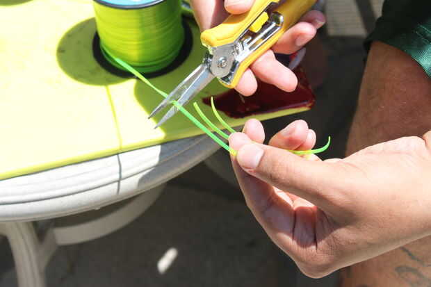 Use el cordón para cortar todos los "pétalos" y "pistilos" desea. Yo suelo utilizar cordones de 2-4 pétalos y 3 pistilos ambos colores diferentes. Resplandor en el oscuro encaje funciona muy bien también.