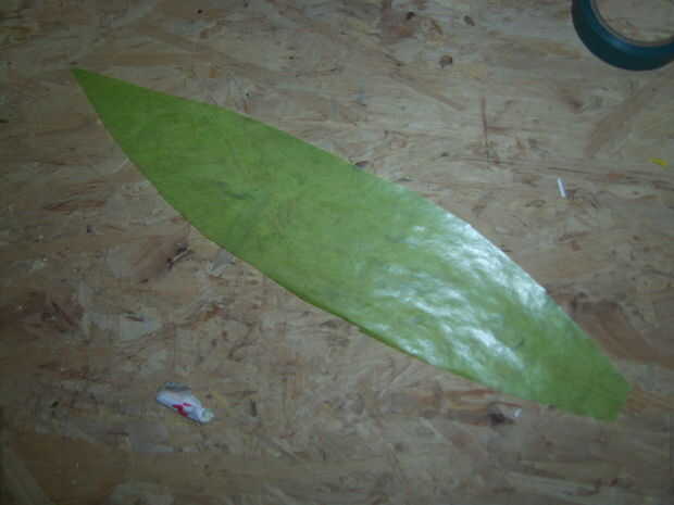 Cortar dos hojas de papel traslúcido verde y cinta adhesiva en el tallo.