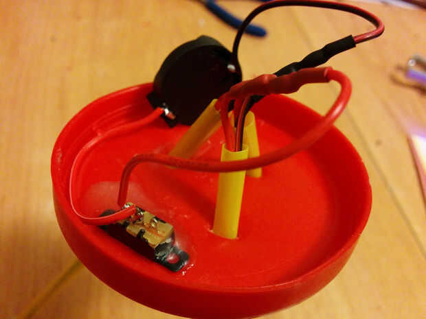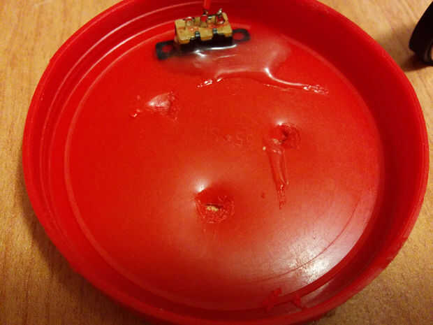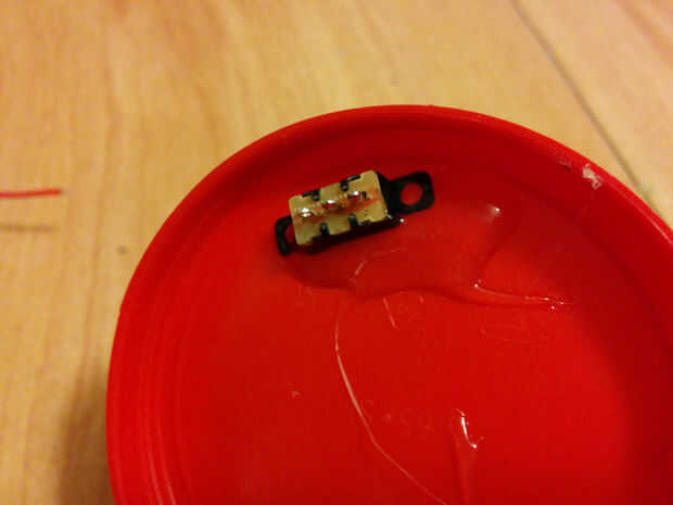 En este momento puede estaño y suelde las conexiones del interruptor y el batería titular. Para el interruptor, usted puede elegir utilizar pin izquierdo y medio o medio y derecha del pin, que es lo mismo. En el soporte de la batería, tenga cuidado de la polaridad.