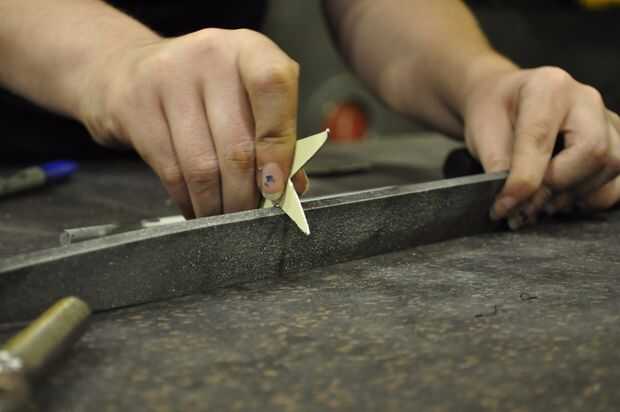 Retire todos los filos y rebabas de las piezas. Puede utilizar archivos y herramientas de desbarbado de los agujeros y espacios reducidos. Para los bordes más largos, puede utilizar la lijadora de mano o cinturón.