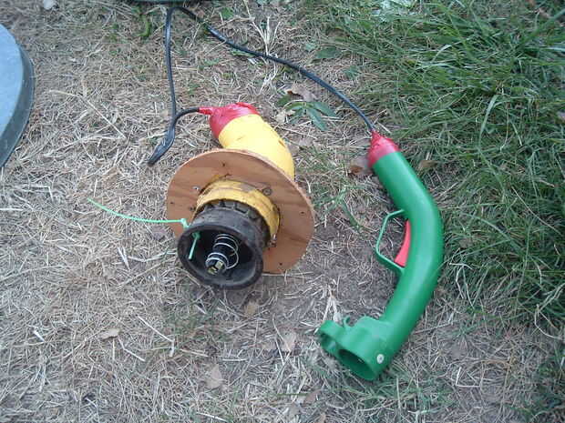 (Con el más reciente motor de trimmer cadena muestro tuve que modificarla con una dona de madera como se ve en la imagen siguiente).