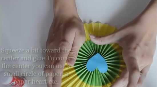 Exprimir un poco el centro y cubrir el centro con un pequeño círculo de papel, un corazón de papel, etc....