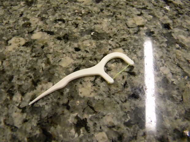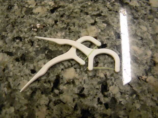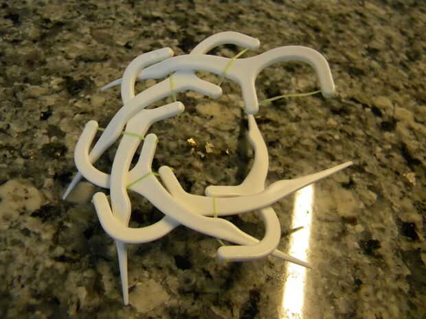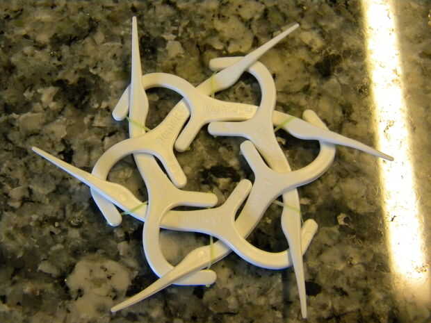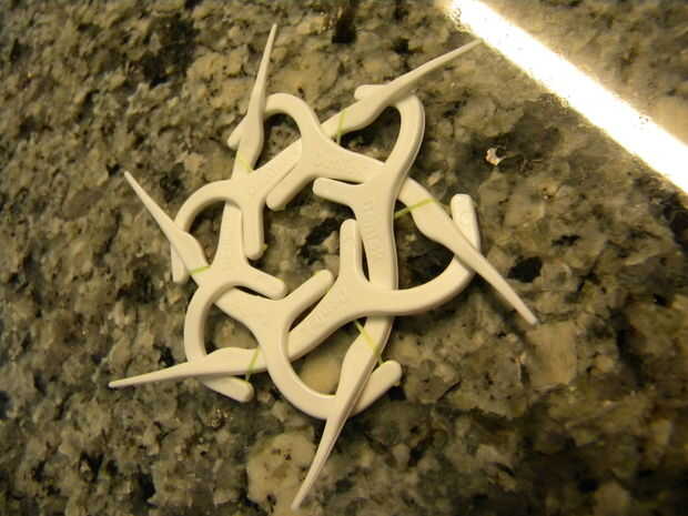 uno de los más apreciados elementos que se esconden en el closet de mi cuarto de baño son hilo para bordar de selecciones. Encontrar un bolso con algunas selecciones no utilizados (sólo parecían no utilizados, pero no estaba seguro...) Yo jugaba con ellos y había creado una estrella fuera de ellos. Sólo tenía seis de ellos, pero fácilmente se puede hacer una estrella más grande. Esto puede ser hecho como una decoración agradable, un arma potencial, o utilizado para crear un aire de menta mientras trabajas. Es fácil de hacer en pocos minutos, por lo que mucho se puede hacer para traer nuevo propósito que usar hilo dental selecciones!
