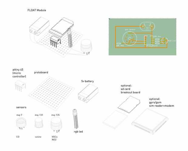 • Sensor precalentado + breakout Junta--hay una gran variedad de sensores se puede utilizar, y sus números de modelo comienzan con MQ. Vea esta página para más información: http://playground.arduino.cc/Main/MQGasSensors esencialmente cada modelo diferente detecta un gas distinto. Utilizamos una gama de MQ, de MQ135 a MQ4