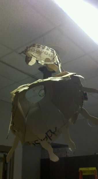 Diseñar y crear un objeto animal o artificial temática marina sólo de material reciclable, preferentemente de cartón. Crear sólo con la construcción ranurada y para el uso del estudiante de secundaria promedio.