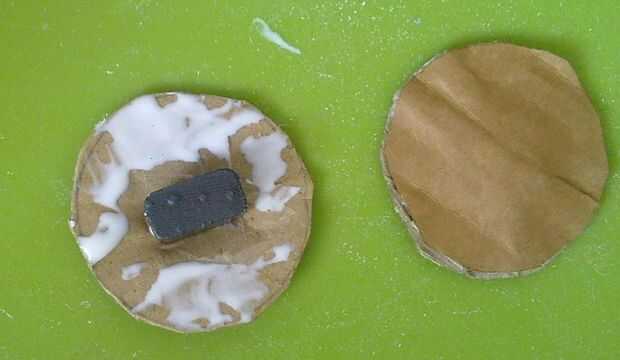 Ponga el imán 2 º en el círculo 1. Preste atención a que la polaridad de los imanes será justo así que actract y no de repulsión.