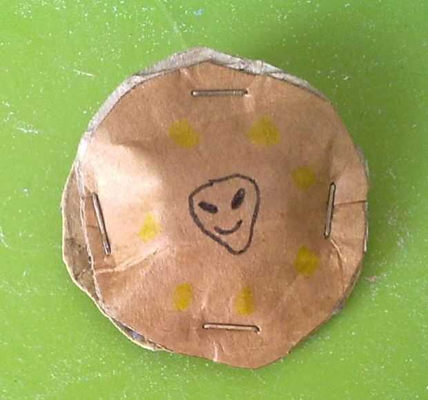 Pegamento y grapas del círculo 2 y decorar el OVNI.