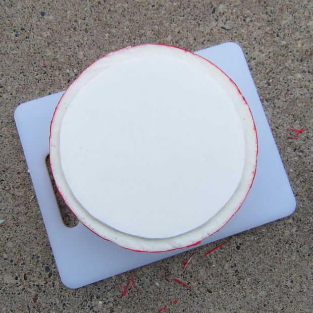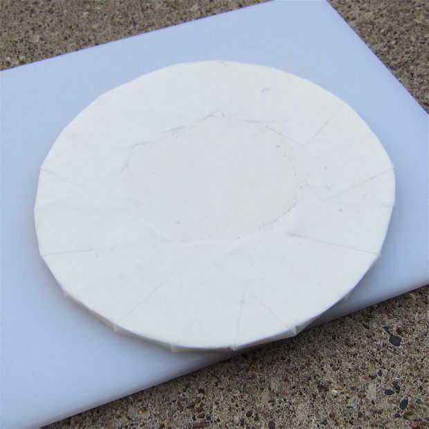 Aerosol la hoja presionando envuelto Junta disco con Super 77 en la parte que se dobla encima. Pegarlo en el centro de la parte plana de la pelota de fútbol de corte.