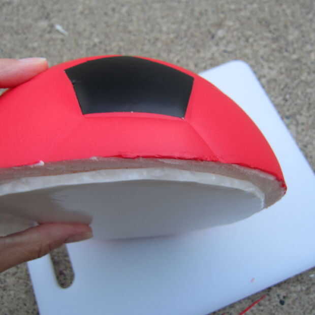 Voltéela, para que el lado plano es hacia abajo, sobre una superficie lisa y siéntese o arrodíllese en él para asegurarse de que las dos piezas se pegan correctamente. Ahora, hacer otro! Hay, de hecho, un restante la mitad de un balón de fútbol que no sirve para nada!