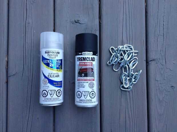 -Cerca de 3,5 pies de cadena de acero; No utilice una cadena de metal galvanizada (yo usé una cadena con enlaces largos de 1.25"; para cualquier persona que utilice la misma cadena tamaño te lista el número de enlaces que corresponden a cada medición)