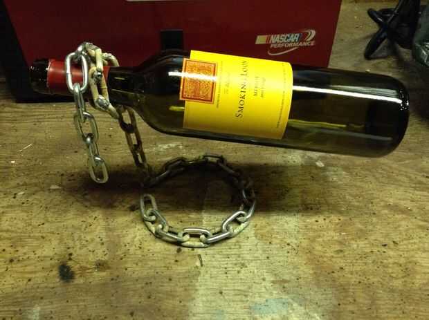 -Envuelva la cadena restante alrededor del cuello de la botella de vino.