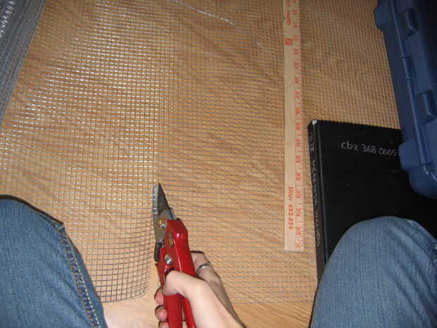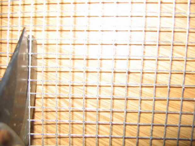 Coge el alicate para cortar la malla. Cortar la malla a lo largo de la línea de alambre que es más cercana a 18". ** El cable es muy agudo después de que la corte, así que mantenga los dedos de la finalizó Asegúrese de que usted está cortando como cerca de la línea de cable como sea posible para no dejar ningún espinosos trozos de alambre a lo largo del borde. (ver imagen)