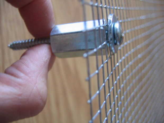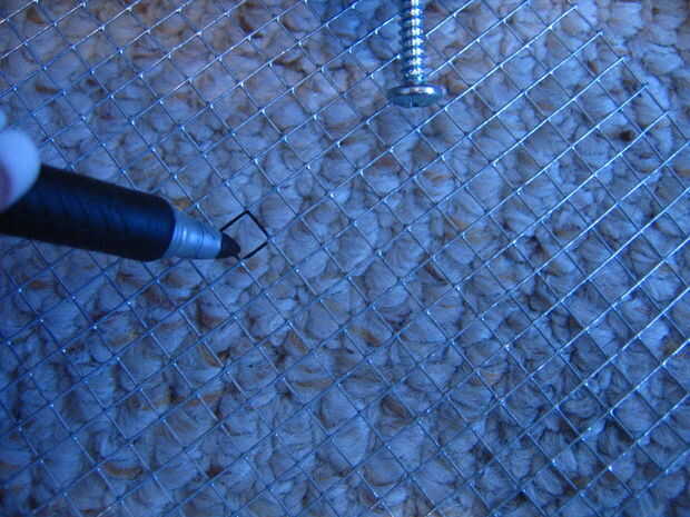 Coge tu rotulador. Usted terminará por tener cuatro casillas marcadas para indicar donde van los tornillos en la malla. Vas a marcar el cuadrado que es 12 de la parte superior o inferior de cada esquina y 12 desde la izquierda y derecha de cada esquina (ver imagen #2). Cuando se mide verticalmente y horizontalmente en cada esquina, el centro del cuadrado que debe ser 2-7/8"