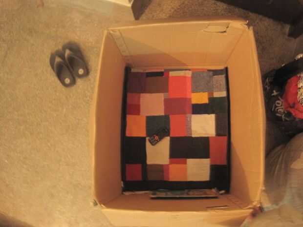 Lugar su alfombra favorita de pequeño tamaño dentro de la caja para hacerla cómoda para sentarse.
